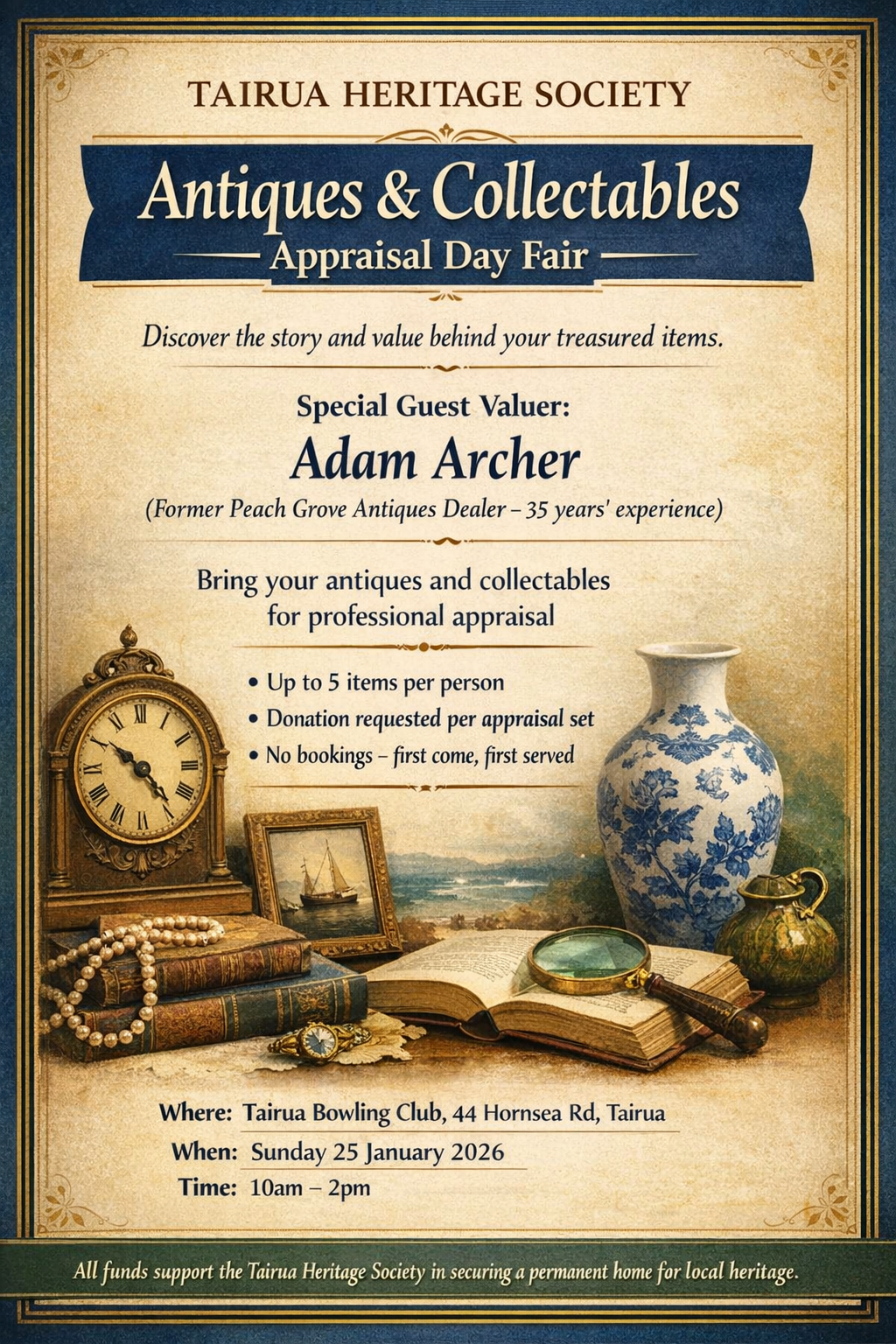 Bring along up to five items and have them appraised by Valuer Adam Archer.